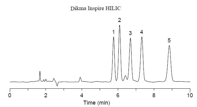 Inpire HILIC柱在HILIC模式下对极性化合物的保留变化