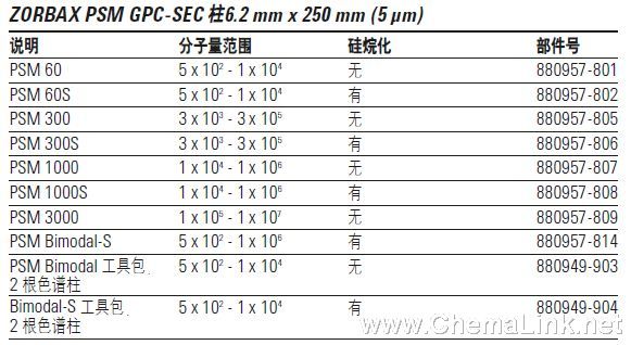 Agilent ZORBAX PSM 体积排阻色谱柱可以用于大多数合成化合物和天然聚合物上的分子量分