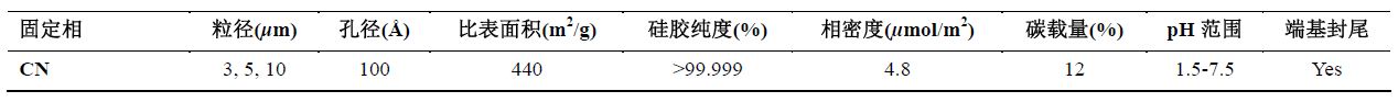 * 氰丙基二甲基硅烷高密度键合在高纯硅胶基质上