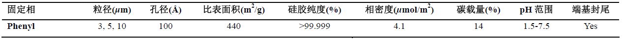 * 苯基基团键合在高纯硅胶基质上