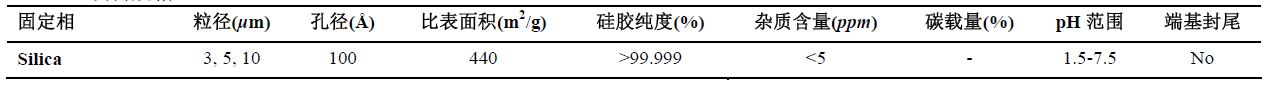 Platisil Silica柱是以纯度为99.999%的高纯多孔球形硅胶为基质,金属杂质总含量小于5ppm,颗粒表面光滑、粒径孔径分布均匀、球形对称度好,加上迪马科技独有的填装工艺,使得该色谱柱具有高柱效、高稳定性、低柱压等特点。