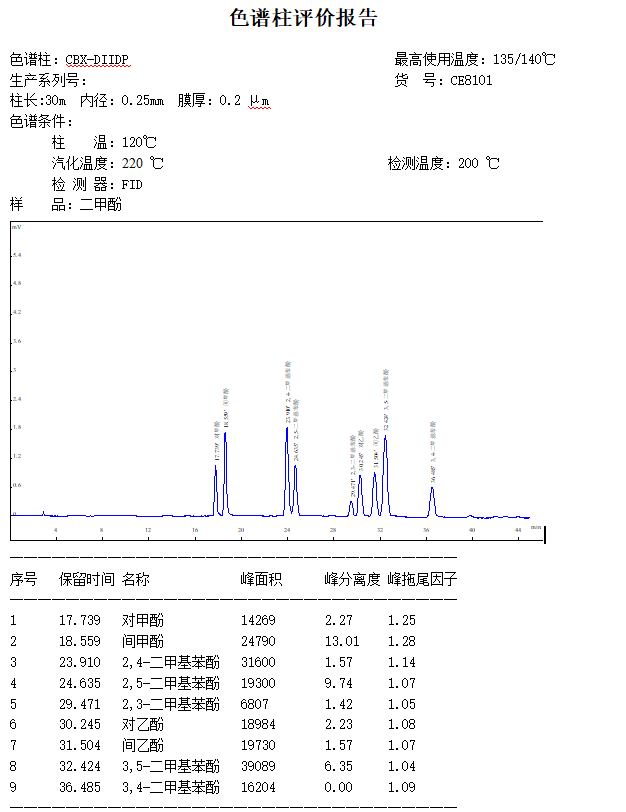 满足《GB/T 2601-2008 酚类产品组成的气相色谱测定方法》要求