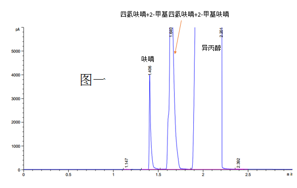 我用的溶剂是异丙醇,这三者老是分不开(图一),进样量是3μL,分流比是30:1,柱箱温度是50℃升至140℃,4℃/min的速率。尽管我把柱温改为40℃,先以2℃/min升至50℃,再以4℃/min升至140℃,虽然三者有一点分离了,但... [图片]