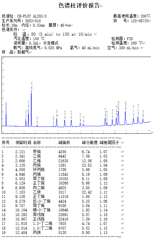 应用:用于轻烃分析的优秀通用色谱柱-C1-C8烃类同分异构体。可分离丁烷中乙炔,异丁烷中的丙烯。