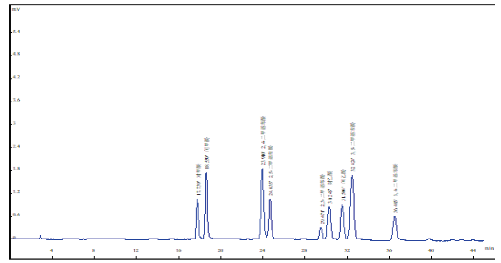 满足《GB/T 2601-2008 酚类产品组成的气相色谱测定方法》要求