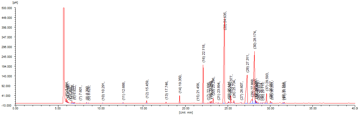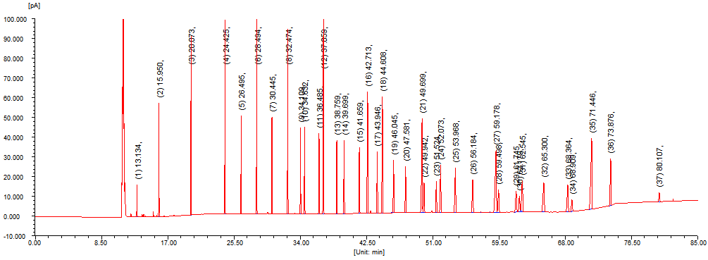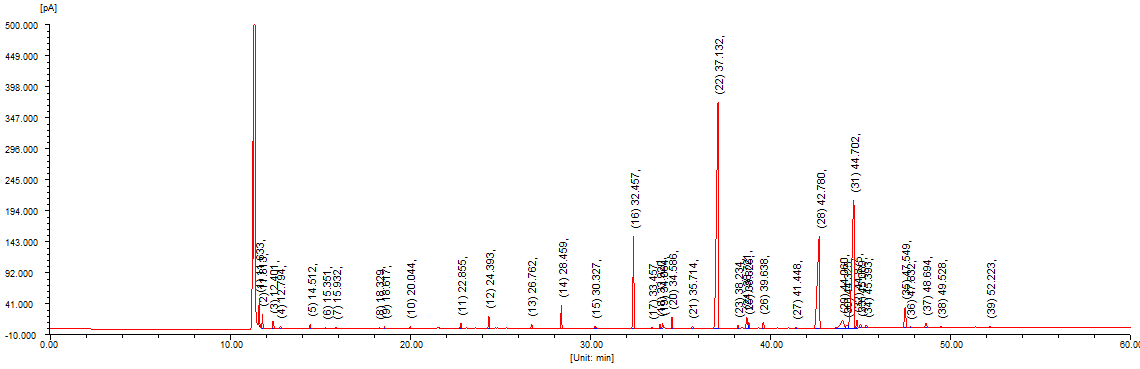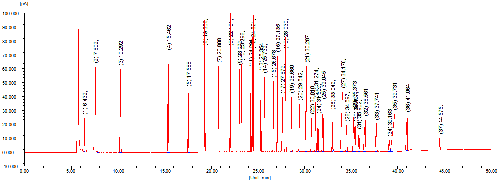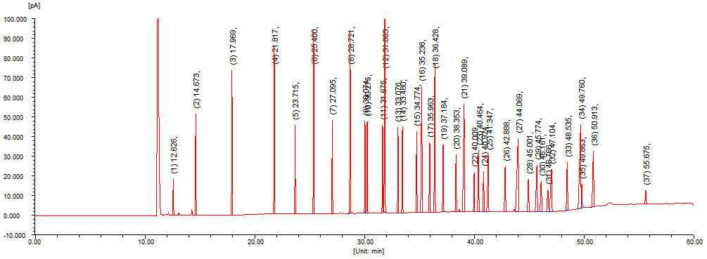 37种脂肪酸在RBX-FAME (柱长60m)色谱柱上的分离谱图