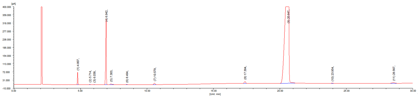 该方法为标准品或者样品直接进样的色谱图及应用数据;如想了解更详细的信息,请参考“标准资料”栏目中(如有)关联技术资料,或者联系色谱世界网站官方客服。