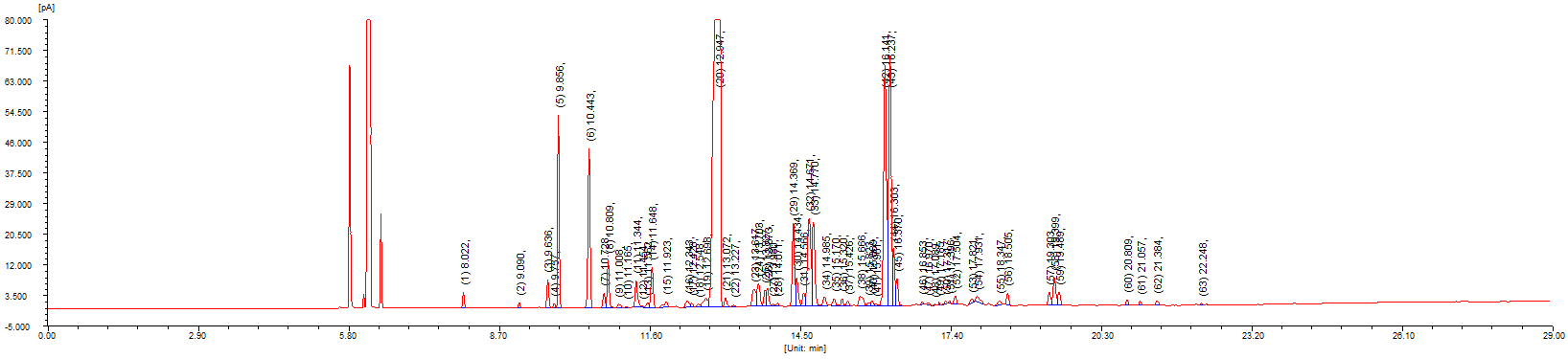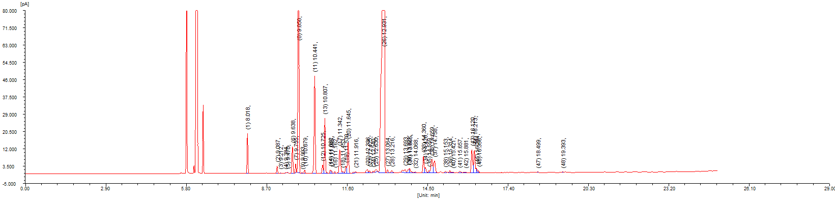 由于全氟聚醚羧酸沸点高、极性大,不能采用直接进样,需要衍生化,本方法采用了样品加甲醇,用磷酸(或者硫酸)作催化剂,在一定温度下进行甲酯化后再采用气相色谱法分析,面积归一法测定样品的纯度。
