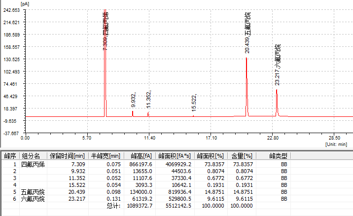 四氟丙烯 (7.309) 0 五氟丙烷 (20.4) 0 六氟丙烷 (23.2) 0