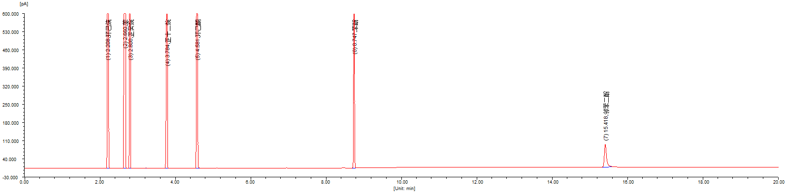 邻苯二酚的典型分离谱图(RBX-1)
