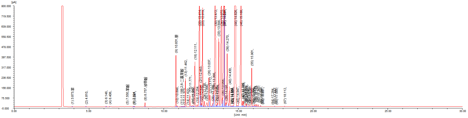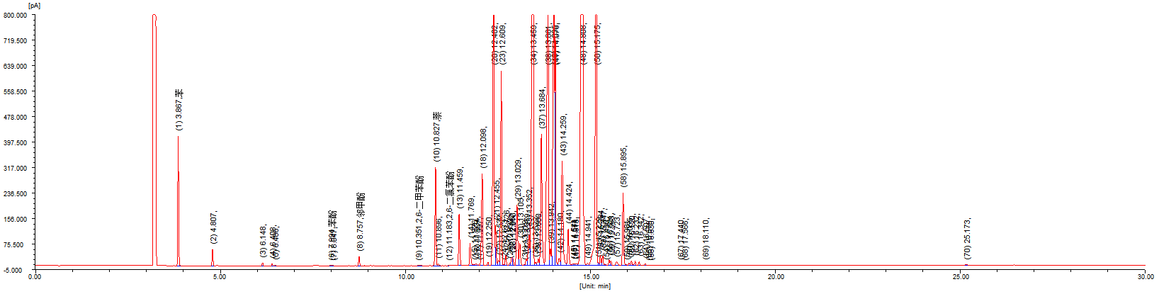 苯、萘、部分酚的分离定性谱图