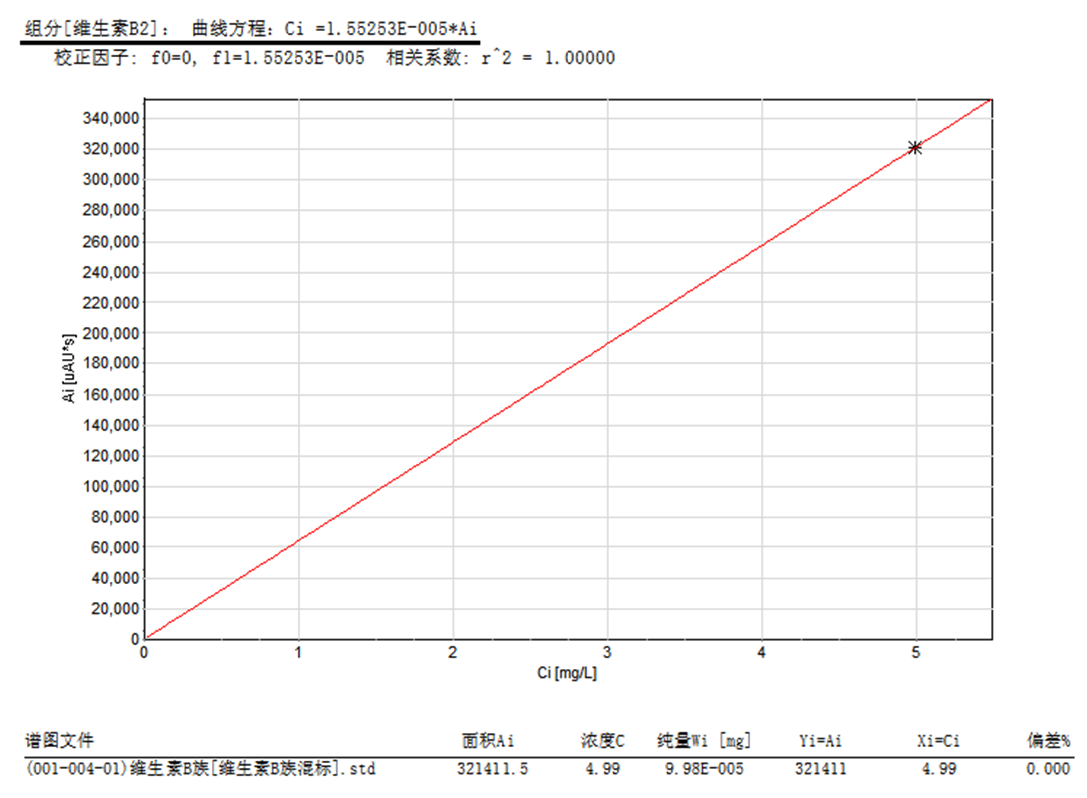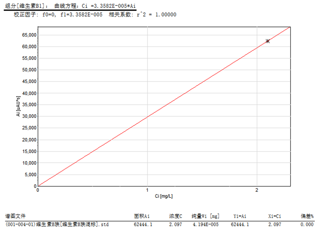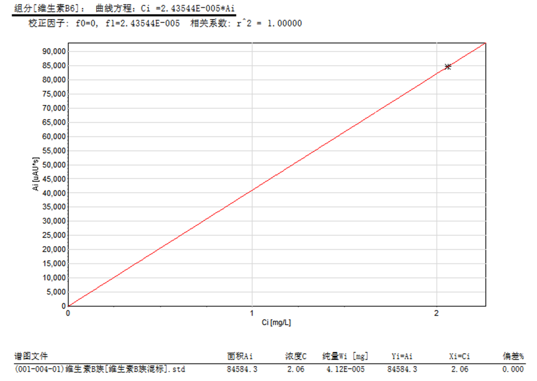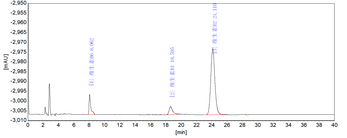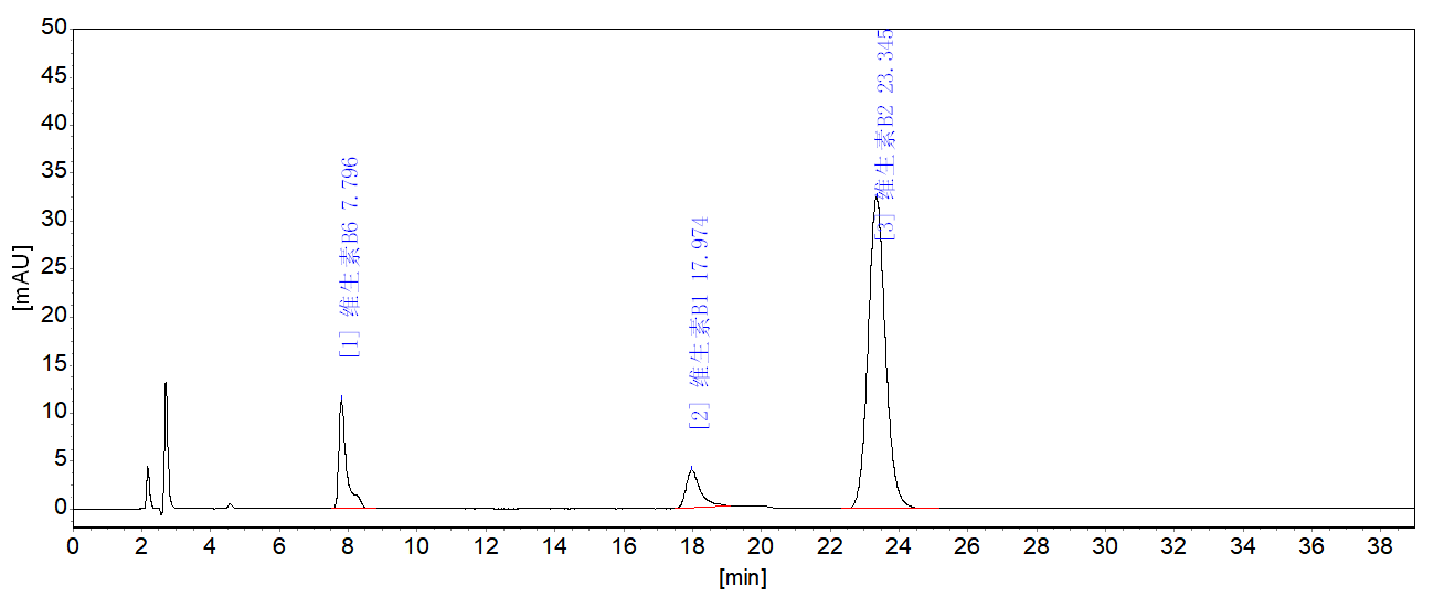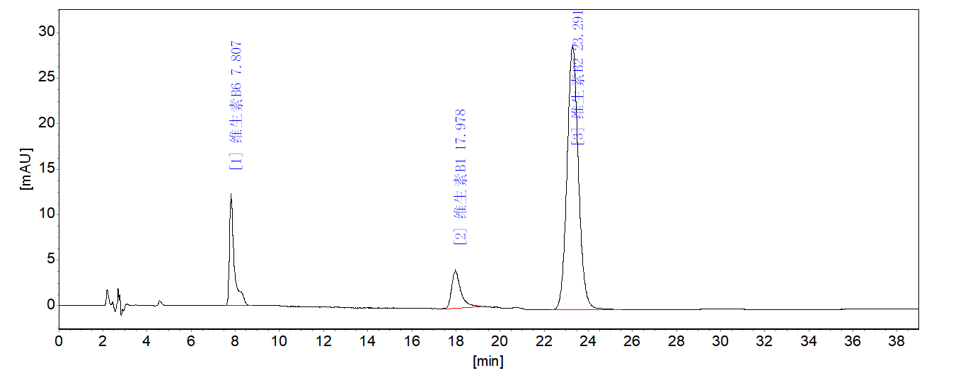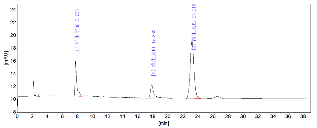 维生素B1、B2和B6混合标准溶液谱图及结果