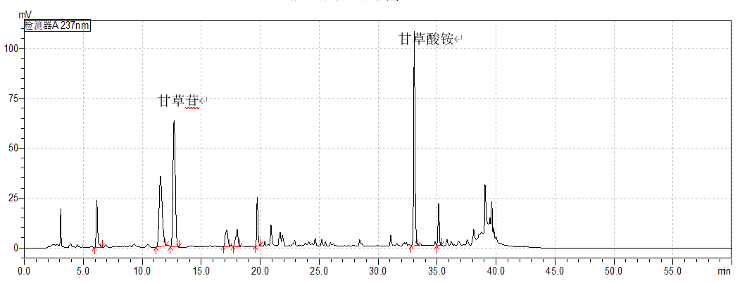 甘草苷、甘草酸铵对照品典型谱图及结果