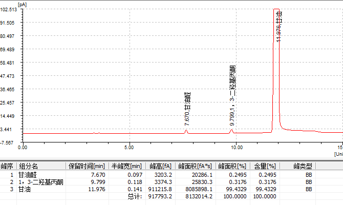 样品2:甘油,1,3-二羟基丙酮,甘油醛混合水溶液