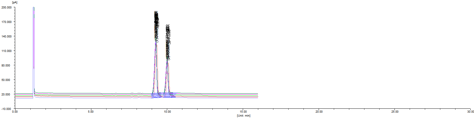 对照品溶液六针的多重谱图