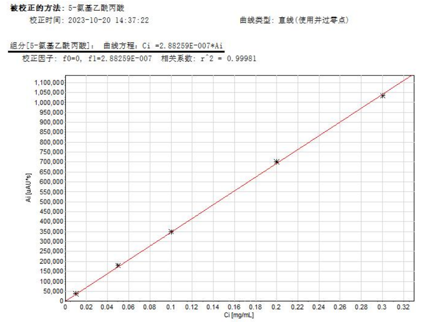 12 5-氨基乙酰丙酸标准储备溶液(2.64mg/mL):准确称取客户提供的 5-氨基乙酰.丙酸标准