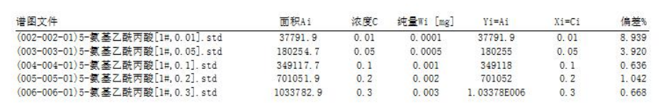 列标准溶液,浓度分别为: 0.01mg/mL,0.05 mg/mL,0.1 mg/mL,0.2 mg/mL,0.3 mg/mL。临