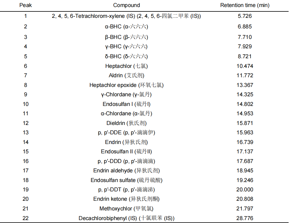 22种含氯杀虫剂 (Pesticides, 22)的分离与检测