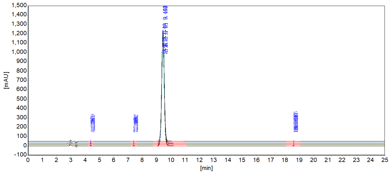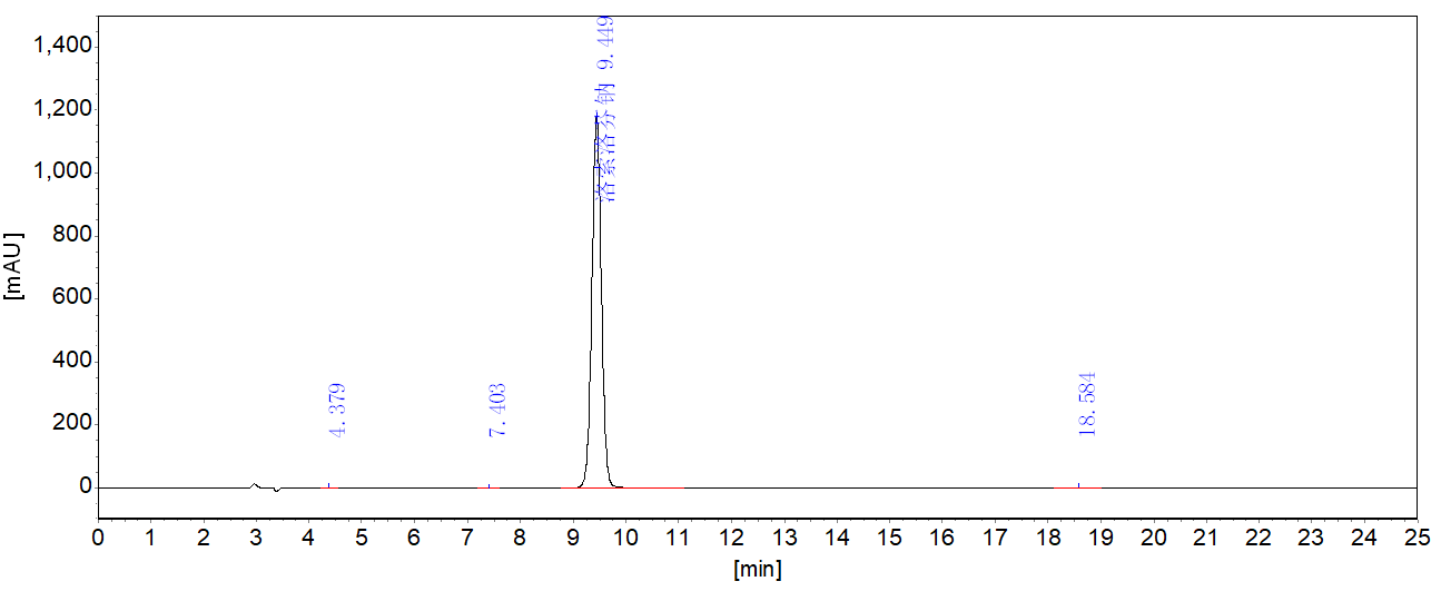 试样经反相液相色谱分离,紫外检测器检测,根据色谱峰的保留时间定性,面积外标法定量。