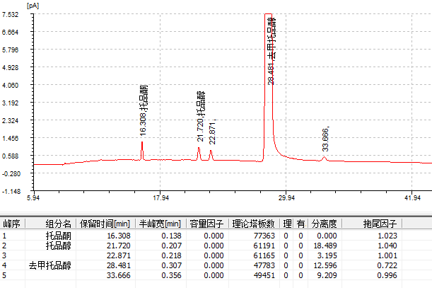 托品酮 (16.308) 0 托品醇 (21.720) 0 去加拖品醇 (28.481) 0