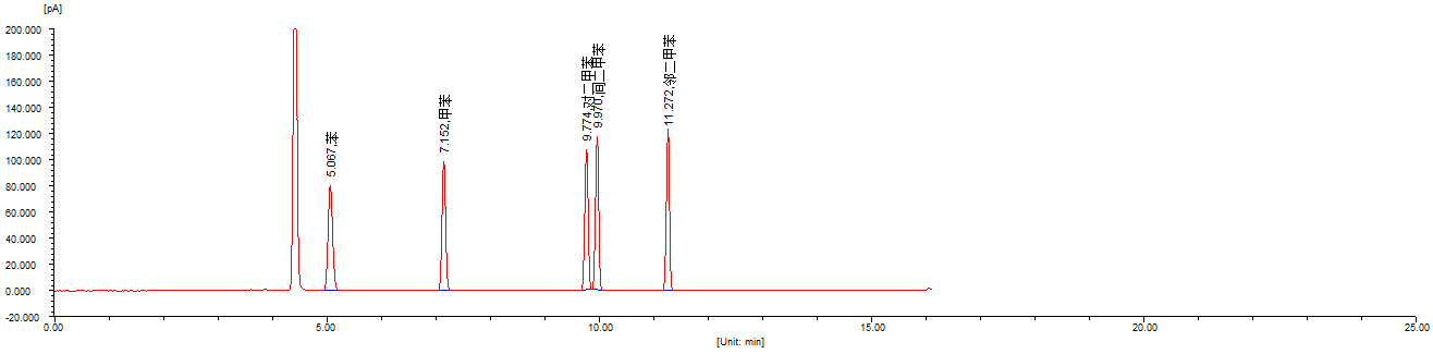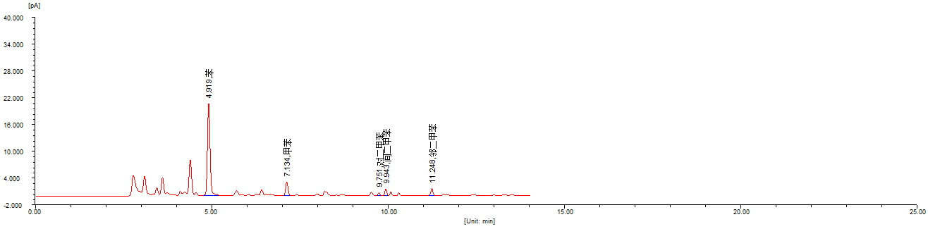 用采样管在常温下富集室内空气中的苯、甲苯和二甲苯,采样管连入热解析仪,加热后将吸附成分导入带有氢火焰离子化检测器的气相色谱进行分析。