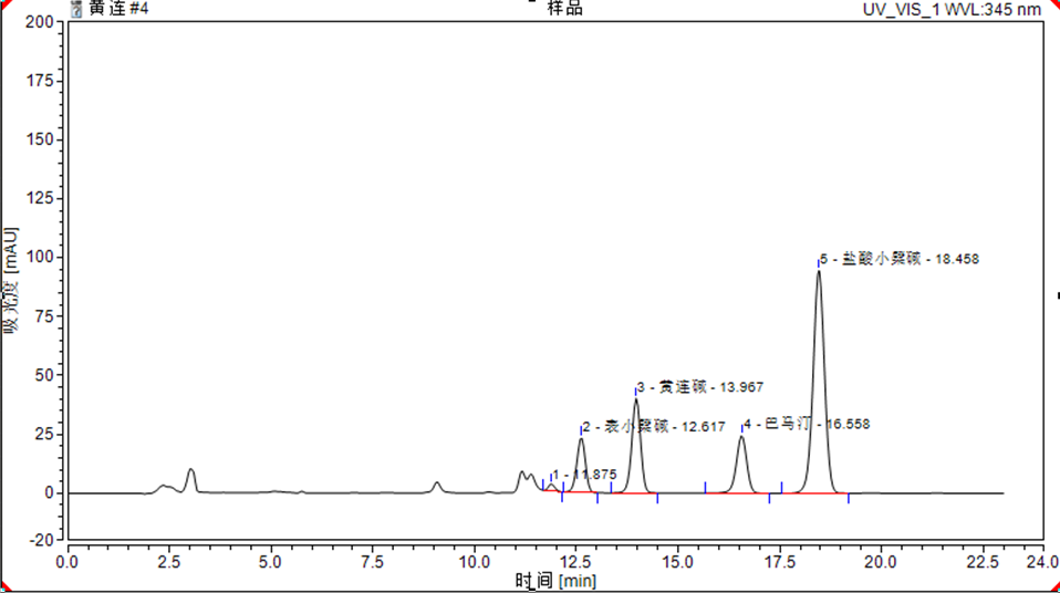 黄连供试品典型谱图及结果