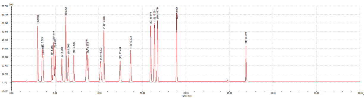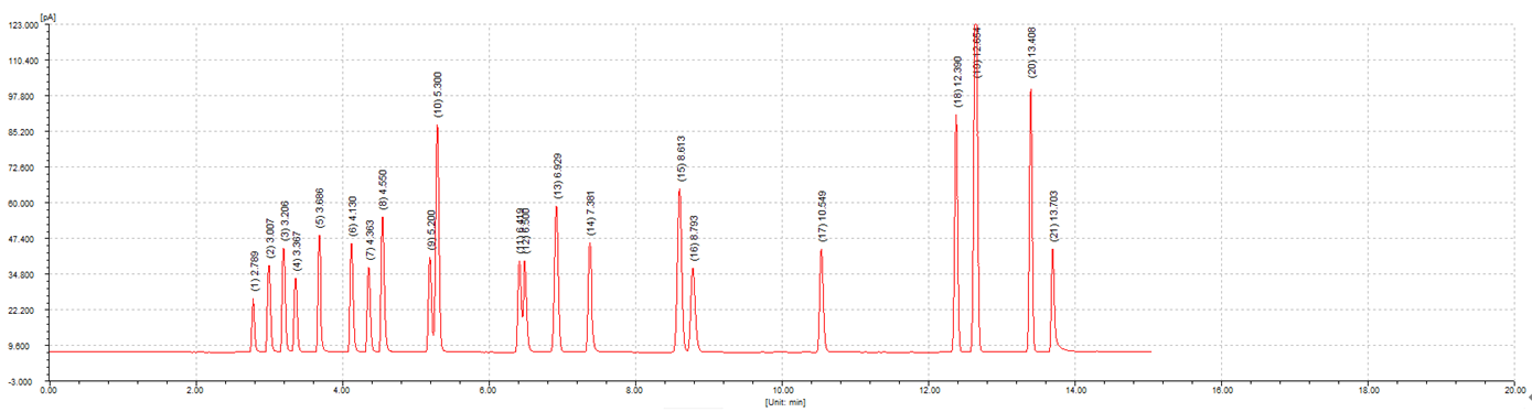 21种有机溶剂典型分离谱图及数据(CBX-5)