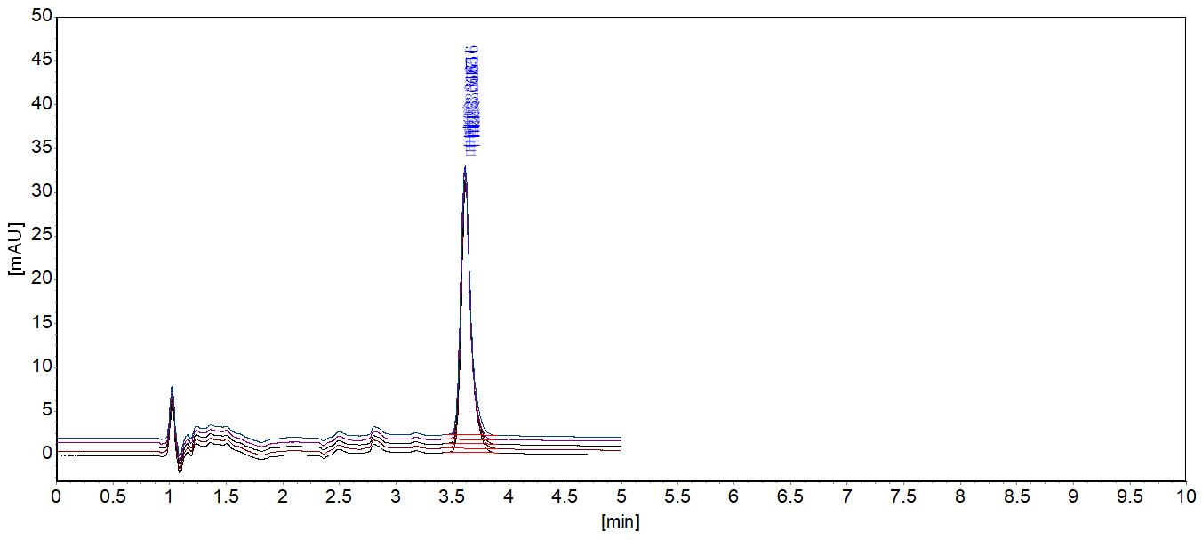 叶酸五针重复性谱图及结果(Sunshell C18 150*4.6*5)