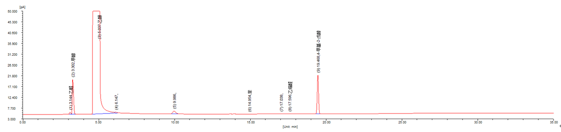 乙醇挥发质的分离谱图及结果