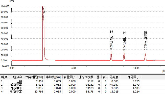 邻氯甲苯、对氯甲苯、间氯甲苯 ,溶剂乙醇,浓度1%
