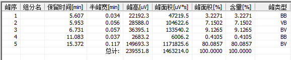 检测温度:120℃ 检测器:TCD