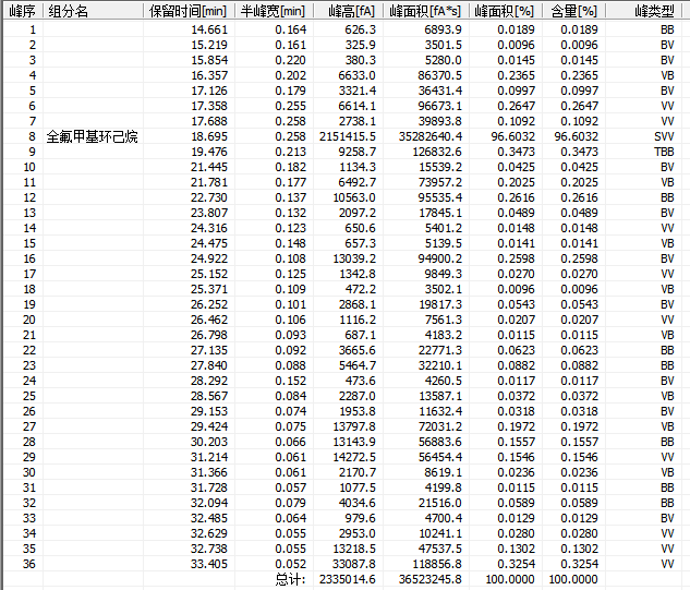 全氟甲基环己烷(18.695)
