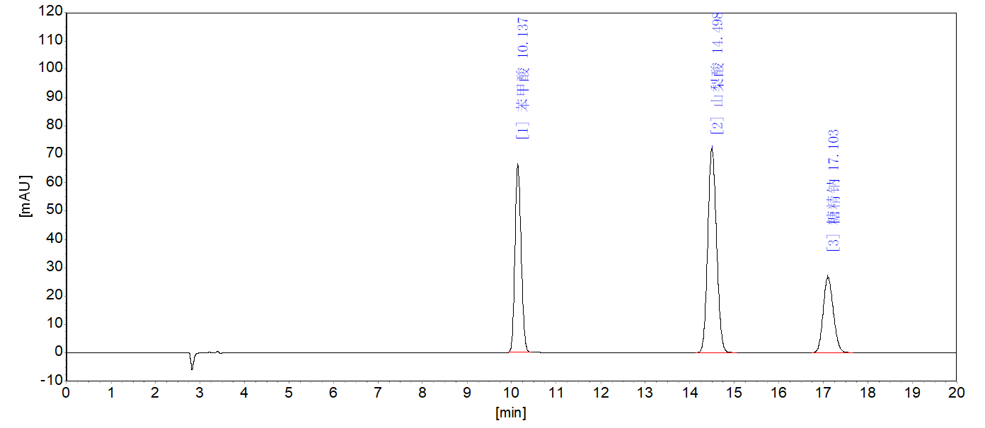苯甲酸、山梨酸和糖精钠第四级标准溶液典型谱图