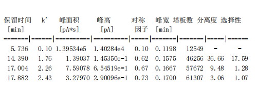 柱 流 量:1ml/min ,载气N2 分 流 比:1:1