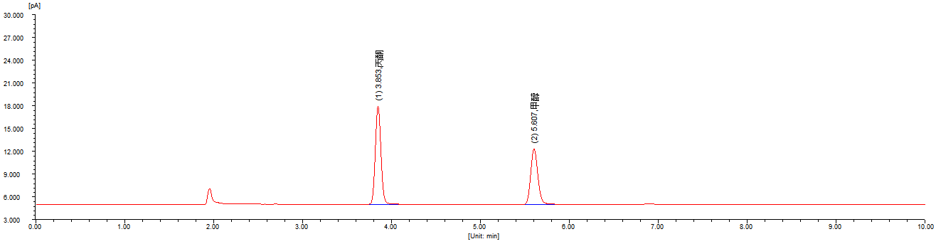 甲醇和丙酮在RB-InnoWax/30m*0.53mm*1.0um上的典型谱图