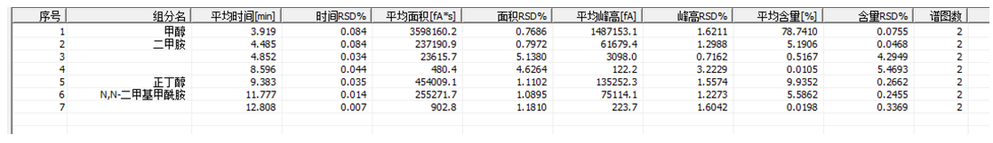 甲醇和二甲胺混合溶液的分离谱图及数据