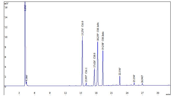 色谱柱:CBX-FAME ,柱长:20m 内径:0.25mm 膜厚:0.20μm