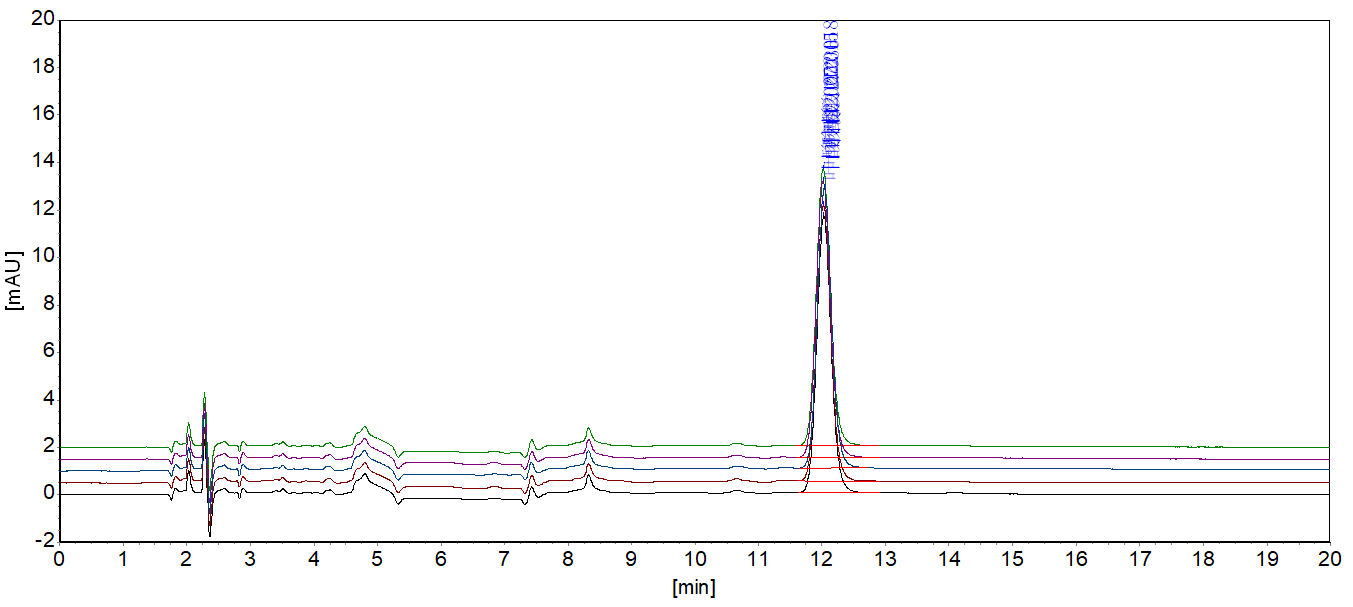 叶酸五针重复性谱图及结果(Sunniest C18 250*4.6*5)