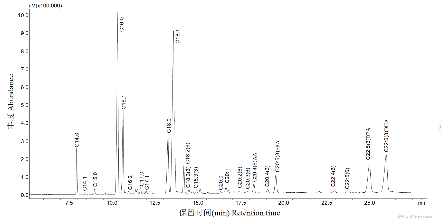 本谱图信息来源于刘江琴老师在《食品与机械》上发表的文章《8种颌针鱼肌肉脂肪酸成分分析》。