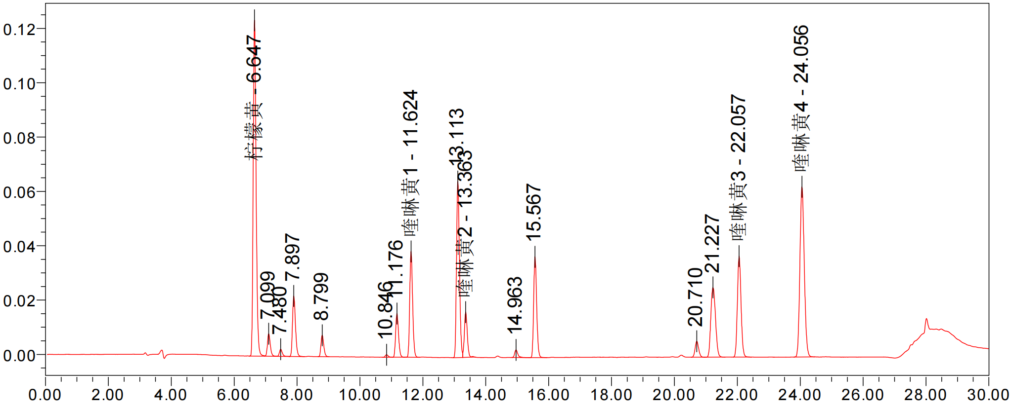 该方法为标准品或者样品直接进样的色谱图及应用数据;如想了解更详细的信息,请参考“标准资料”栏目中(如有)关联技术资料,或者联系色谱世界网站官方客服。