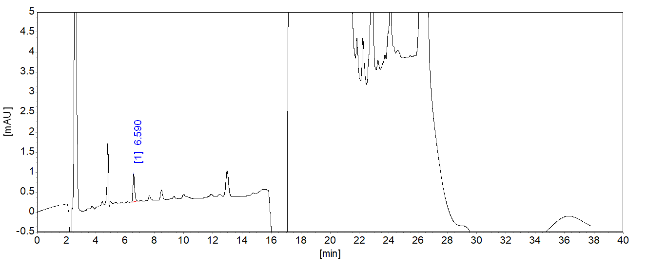 试样经反相液相色谱分离,紫外检测器检测,根据色谱峰的保留时间定性,外标法定量。