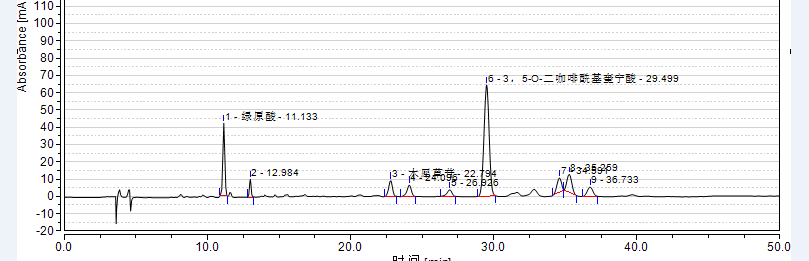 绿原酸对照品、木犀草苷对照品、 3,5-O-双咖啡酰基奎宁酸对照品典型谱图